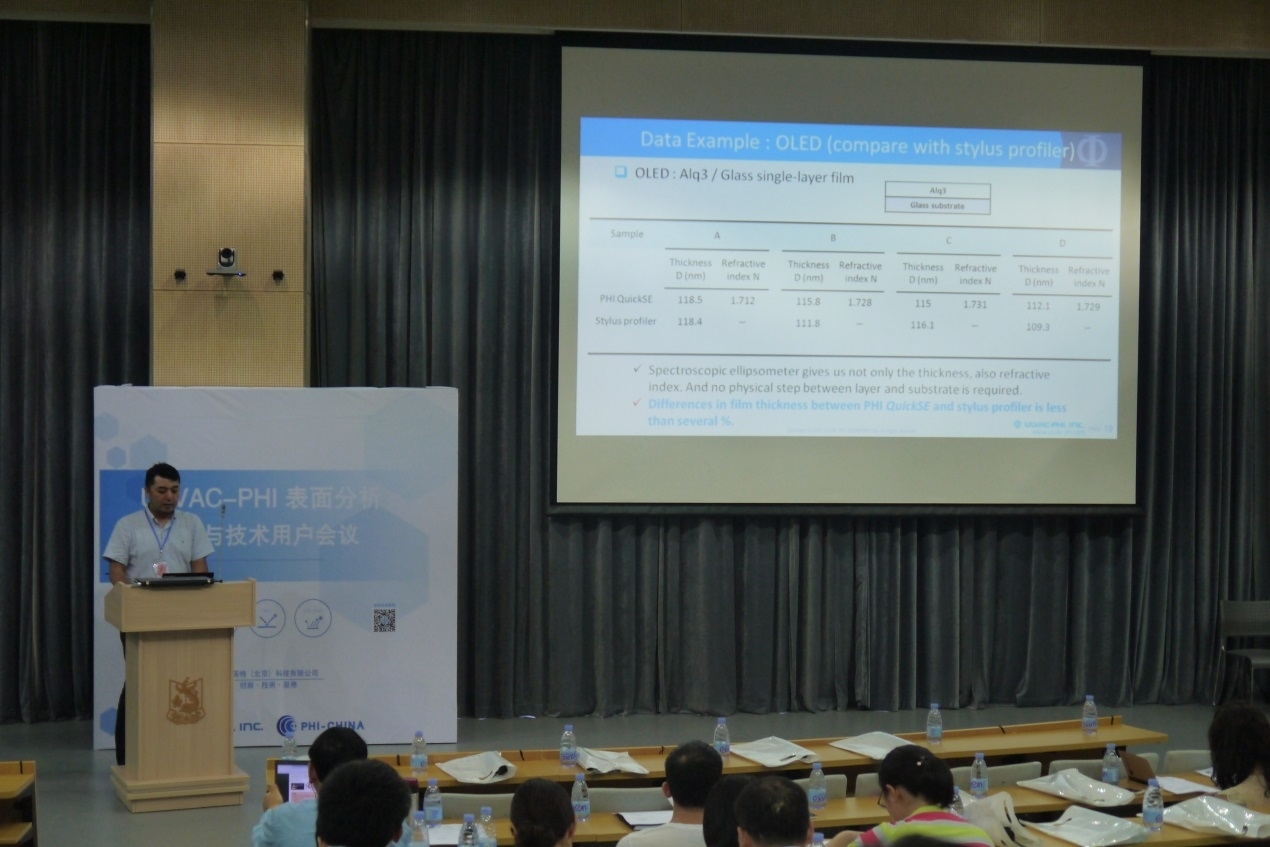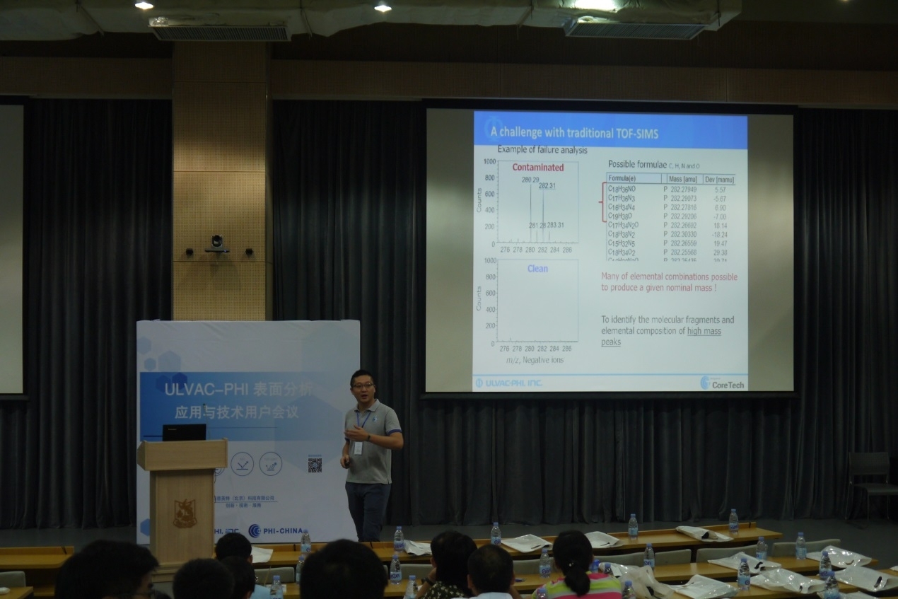 One of the guests, ULVAC-PHI Asia Marketing Manager Mr. Takuji Shibasaki has given a presentation on how to use ULVAC-PHI Ellipsometer in a better way. He had made a very comprehensive introduction and description on this topic. Another guest, ULVAC-PHI scientist Dr. Zhang has given a presentation on Tof-SIMS latest application of materials and done a very comprehensive elaboration on this topic. She even shared some data processing skills of XPS and AES. The guests discussed a lot with all our users in the conference.