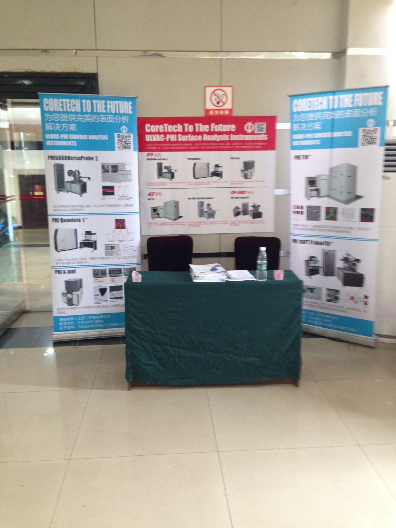 高德英特(北京)科技有限公司积极参与了本次会议,共5人参加,同时也邀请了ULVAC-PHI工厂的专家柴崎先生和真田先生,参加了本次会议。并在会议现场设置了展台,向与会的各位专家和学者,展示了ULVAC-PHI所制造的表面分析仪器,当中包括X射线光电子能谱仪,即PHI 5000 Versaprobe II, PHI Quantera II 及 X-TOOL;俄歇电子能谱仪, PHI710;和飞行时间-二次离子质谱仪,PHI-TRIFT V。